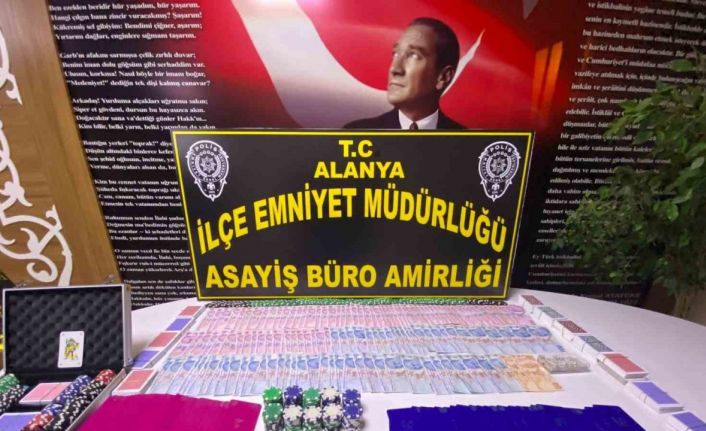 Alanya İlçe Emniyet Müdürlüğüne bağlı ekipler, kooperatif faaliyeti yürüten bir iş yerinde kumar oynandığı bilgisi üzerine harekete geçti. İş yerine düzenlenen operasyonda; masa üstlerinde çok sayıda poker pulu, iskambil ile poker kağıdı ve para olduğu belirlendi. Kumar oynadığı tespit edilen 8 kişi hakkında işlem yapılırken, iş yerinde bulunan 44 şahsın Genel Bilgi Toplama Sistemi (GBT) üzerinden sorgulaması yapıldı. Yapılan sorgu neticesinde 1 şahsın silahla tehdit suçundan aranma kaydı olduğu anlaşıldı. İş yeri sorumlusu olduğu belirlenen Y.Ş.B. ve N.F. hakkında "kumar oynanması için yer ve imkan sağlama" suçundan adli işlem yapılarak iş yeri mühürlendi.
