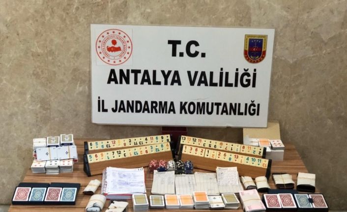 Alanya Cumhuriyet Başsavcılığının koordinesinde Alanya İlçe Jandarma Komutanlığına bağlı ekipler, Kargıcak Mahallesi’nde Y.D.’ye ait üç katlı villada korona virüsü tedbirleri ihlal edilerek kumar oynandığı bilgisi üzerine harekete geçti. Bir süre teknik ve fiziki takip yapan ekipler, belirlenen adrese dün akşam saatlerinde baskın düzenledi. Baskında villanın odalarında yuvarlak masa ve sandalyeler konularak kumarhane çevrildiği tespit edildi. Yapılan aramalarda kumar oynamaya yarayan çok sayıda deste iskambil kağıdı, okey ıstakaları, okey taşları, yaz boz kağıtları ve oyun pulları ele geçirildi.