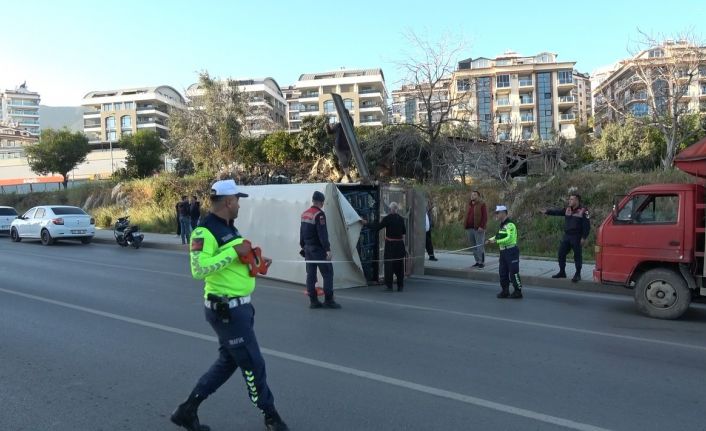 Antalya’nın Alanya ilçesinde kontrolden çıkan muz yüklü kamyonetin devrildiği kazada 1 kişi yaralandı.