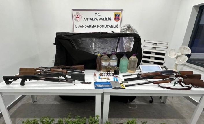 Antalya’da jandarma ekiplerince düzenlenen operasyonda çok sayıda uyuşturucu madde ve 8 adet ruhsatsız av tüfeği ele geçirilirken, olayla ilgili 2 şüpheli gözaltına alındı.