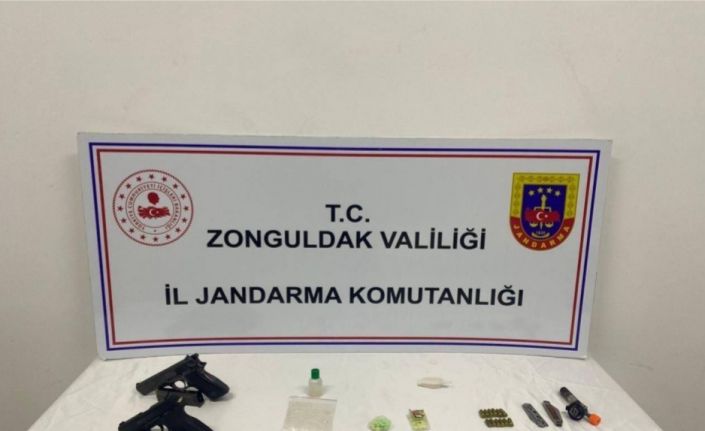 Edinilen bilgiye göre, Zonguldak İlçe Jandarma Komutanlığı ekiplerince yapılan istihbarat çalışmaları neticesinde Alaplı ilçe sınırları içinde durdurulan bir araç içinde uyuşturucu operasyonu yapıldı. Alınan arama kararın ardından düzenlenen operasyonda, araçta bulunan 2 şüphelinin üzerinde yapılan arama neticesinde 40 gram metamfetamin, 35 adet extacy hap, 2 adet tabanca, 33 adet 9 mm çapında fişek, 2 adet çakı, 1 adet pürmüz ele geçirildi.