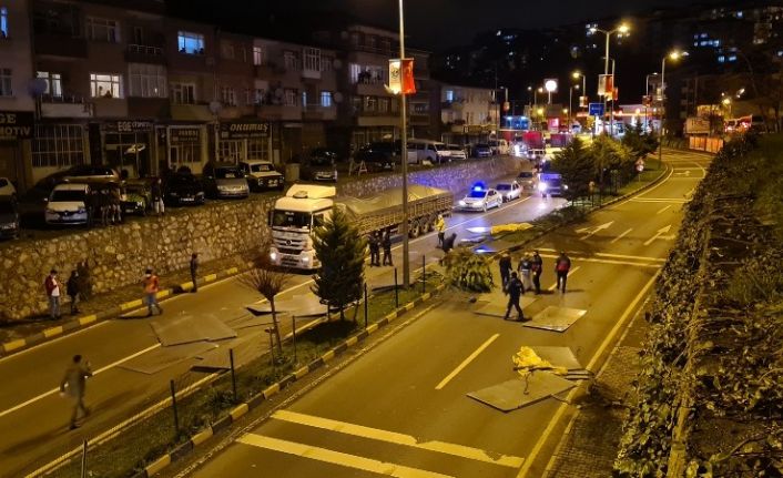 Zonguldak’ın Alaplı ilçesinde seyir halindeki tırın dorsesinde bulunan 10 tonluk dilim levha saçlar yola savruldu.