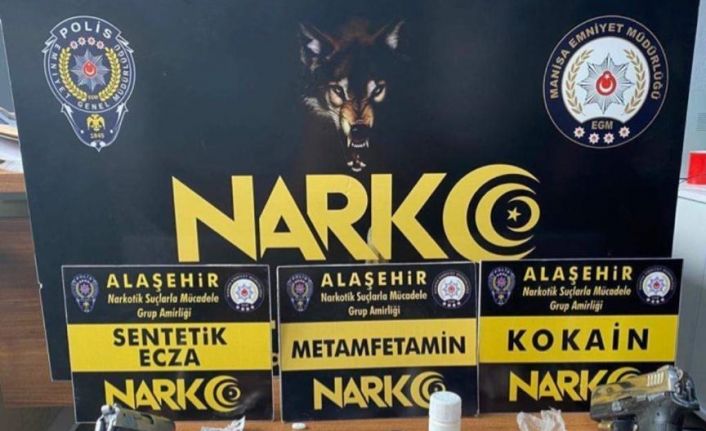 Manisa İl Emniyet Müdürlüğü Narkotik Suçlarla Mücadele Şube Müdürlüğü ve Alaşehir Narkotik Suçlarla Mücadele Grup Amirliği ekipleri uyuşturucu veya uyarıcı madde ticareti yapan, nakleden ve kullanan şahıslara yönelik yürütülen çalışmalarda 0,58 gram metamfetamin, 13 adet sentetik ecza, 2,1 gram taş kokain maddesi, 1 adet hassas terazi, 2 adet 9 mm ruhsatsız tabanca, 5 adet 9 mm fişek ve uyuşturucu madde ticaretinden elde edildiği değerlendirilen 4 bin 290 TL ele geçirildi. Operasyonda uyuşturucu veya uyarıcı madde imal ve ticareti yapmak suçundan gözaltına alınan 2 şüpheli sevk edildiği mahkemece tutuklanarak cezaevine gönderildi.