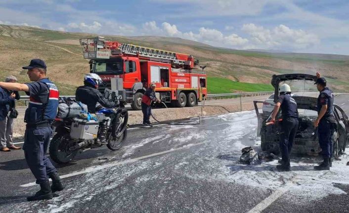 Sivas’ın Gürün ilçesinde seyir halindeyken biranda yanmaya başlayan araç, adeta küle döndü.