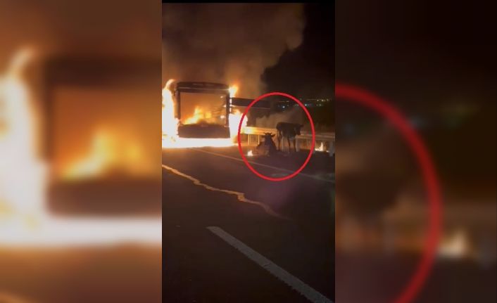 Diyarbakır’ın Çınar ilçesinde seyir halindeyken alevlere teslim olan kamyonet yanarken, kamyonetin arkasında ise inekler istifini bozmadan oturdu. O anlar vatandaşın cep telefonu kamerasına yansıdı.