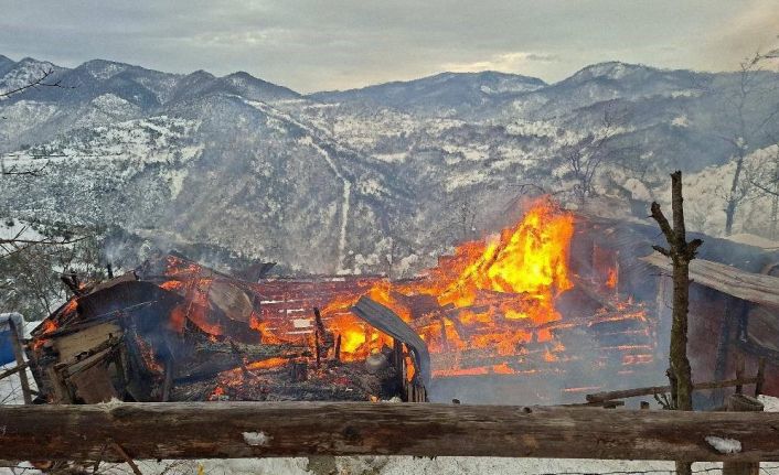 Karabük’ün Yenice ilçesinde alevlere teslim olan ahşap ev tamamen yanarak kullanılmaz hale geldi.