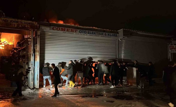 Antakya ilçesi Yeni Sanayi Sitesi’nde araç tamir atölyesi olan 4 iş yeri alevlere teslim oldu. Olay yerine Hatay Büyükşehir Belediyesi itfaiye ekipleri sevk edildi. Alevler kısa sürede büyürken itfaiye ekipleri yangına müdahale etti. Yangını haber alan ve iş yerlerine gelen esnaf, adeta zamanla yarıştı. Esnafın; polis ve itfaiye yardımıyla araçlarını kurtardığı anlar anbean kameraya yansıdı.