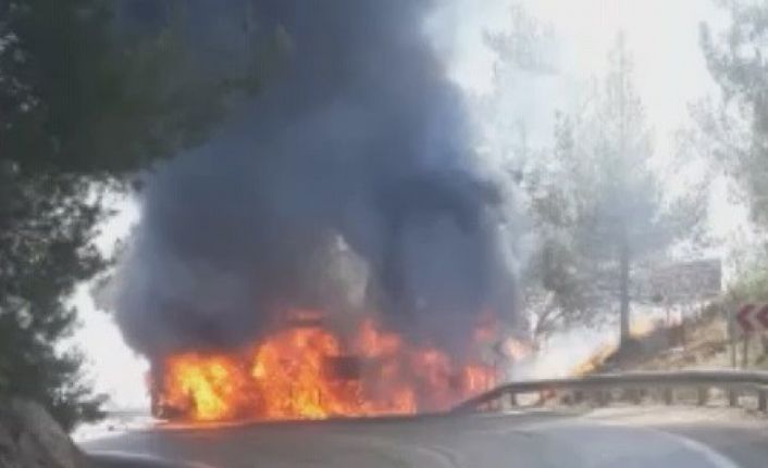 Mersin-Antalya seferini yapan bir yolcu otobüsü Anamur ilçesi sınırlarında alev alev yanarak küle döndü. Yolcuların zamanında indirilmesi nedeniyle facia engellenirken, ormana sıçrayan yangında söndürüldü.