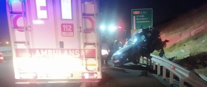 Kaza, dün akşam saatlerinde Aliağa ilçesi Kuzey Ege Otoyolu’nda meydana geldi. İzmir’den Çanakkale istikametine seyir halinde olan M.A., idaresinde 35 SHN 99 plakalı otomobil, sol şeritten sağ şeritte geçmek isterken aynı istikamete seyir halinde olan H.K., idaresindeki 35 BKT 163 plakalı otomobil ile çarpıştı. Çarpışmanın etkisiyle, H.K.’nın kullandığı arabada yolcu konumunda bulunan Edebi Yöndemli, araçtan fırlayarak tahliye kanalına düştü. Durumun 112 Acil Çağrı Merkezine bildirilmesi üzerine olay yerine sağlık ve jandarma ekipleri sevk edildi. Jandarma ekipleri çevrede güvenlik önlemi alırken, sağlık ekipleri yaptıkları kontrollerde araçtan fırlayan Yöndemli’nin ve aynı araçta yolcu konumunda bulunan Ender Yöndemli’nin hayatını kaybettiğini, araç sürücüsü H.K.’nin ve yine aynı araçta yolcu konumunda bulunan B.S.’ün ağır şekilde yaralandığı tespit edildi. Yaralılar ambulans ile Aliağa Devlet Hastanesi ve Menemen Devlet Hastanesine kaldırılarak tedavi altına alındı.
