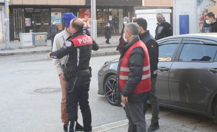 Pandemi tedbirlerini ihlal ettiği öne sürülen alkollü şahsın gözaltına alınması için karakol ekibi de olay yerine çağrıldı. Bir süre sonra gelen polis ekipleri şahsı ekip otosuna bindirerek ifadesine başvurmak üzere polis merkezine götürmek istedi.