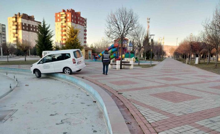 Konya’da alkollü sürücü, kullandığı hafif ticari aracıyla sokak zannedip parka girdi. Aracın ön kısmı parkın süs havuzuna düştü.