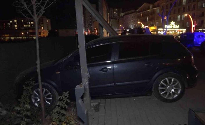 Kırıkkale’nin Yahşihan ilçesinde direksiyon hakimiyetini kaybeden alkollü sürücü, otomobiliyle kaldırım üzerindeki reklam tabelasına daldı.