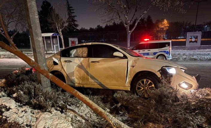 Kayseri’nin Melikgazi ilçesinde direksiyon hakimiyetini kaybeden sürücü önce refüjdeki ağacı devirdi sonra aydınlatma direğine çarparak durabildi. Polis ekipleri tarafından yapılan kontrollerde sürücünün 1.42 promil alkollü olduğu belirlendi.