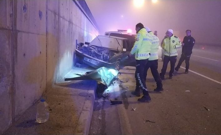 Çorum’da kontrolden çıkarak alt geçidin duvarına çarpan otomobil alev aldı. Olayda 2 kişi yaralanırken, otomobilde çıkan yangın itfaiye tarafından söndürüldü.