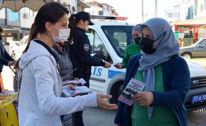 Yalova Altınova İlçe Emniyet Amirliği ile Altınova Belediyesi ekipleri, Kadın Destek Uygulaması (KADES) hakkında broşür dağıttı.