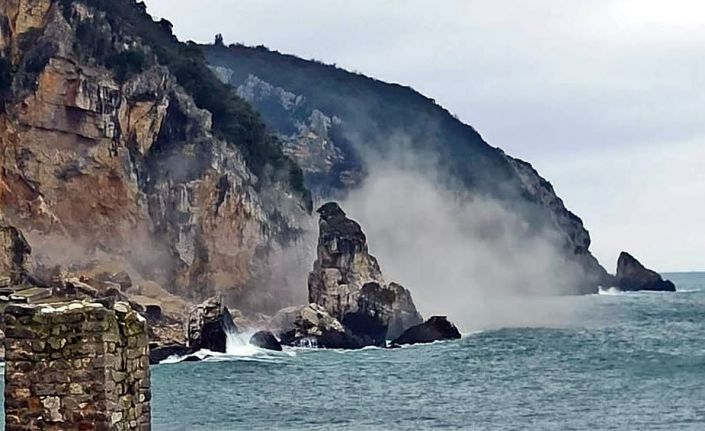 Amasra ilçesinde kar yağışının ardından devam eden sağanak yağışlar nedeniyle heyelan meydana geldi. Küçük Liman olarak bilinen bölgedeki eski vahşi depolama alanında metrelerce yükseklikteki kayalıklardan dev parçalar koptu. Dev kayalar akan toprakla birlikte denize ve sahile düştü. Alanın terk edilmiş olması nedeniyle herhangi bir zarar olmadığı öğrenilirken, devam eden kayma ve kopmalar nedeniyle bölgede güvenlik tedbiri alındı. Kopan dev kaya kayalarının metrelerce yüksekten yuvarlanarak denize düştüğü anlarda ortaya çıkan gürültü vatandaşları korkuttu. Ne olduğunu anlamaya çalışan bir vatandaş kaya parçaları ve toprağın denize düştüğü anlarda geride bıraktığı toz bulutunu fotoğraflarken, bir başka vatandaş ise kayaların düşme anının hemen ardından yaşananları görüntüledi. Görüntülerde vatandaşların bölge yakınlarındaki araçların çekilmesi konusunda birbirlerini ikaz etmeleri de yer aldı.