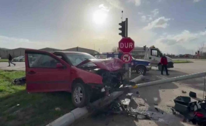 Edinilen bilgiye göre, Zeynep B. idaresindeki 55 AKG 049 plakalı otomobil Küçük Sanayi Sitesi kavşağında Halil D.’nin direksiyonunda bulunduğu 05 ACU 064 plakalı hafif ticari araca çarparak savruldu. Otomobil, kavşaktaki sinyalizasyon direğini de yere serdi.