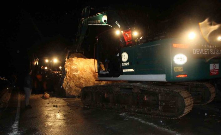 Amasya’da dağdan kopan dev kaya parçaları yola düştü. Olay sırasında yolda araç ya da yaya bulunmaması muhtemel bir faciayı önledi.