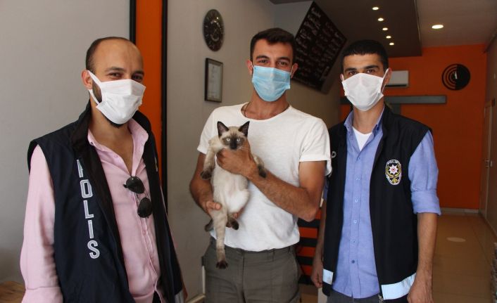 ‘Ramiz’ adını verdiği çok sevdiği kedisine kavuşan Sefa Aydemir, Yalçınkaya ve polislere teşekkür etti.