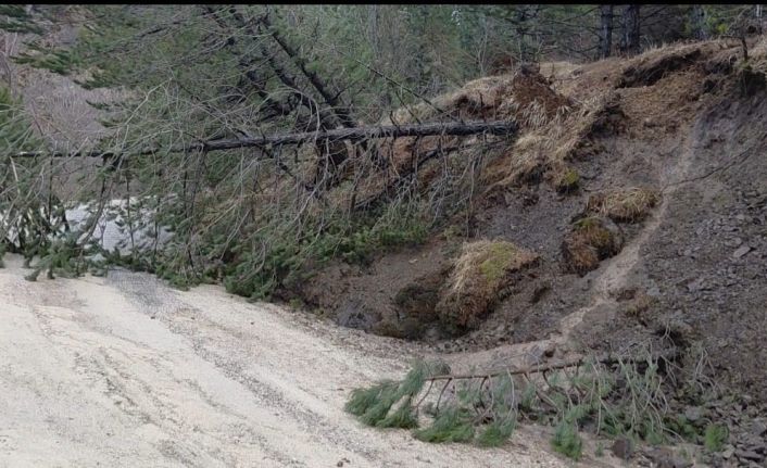 Amasya’nın en yüksek dağı Akdağ’da ormanlık alanda heyelan meydana geldi. Köklerine tutunamayan ağaçlar devrildi.