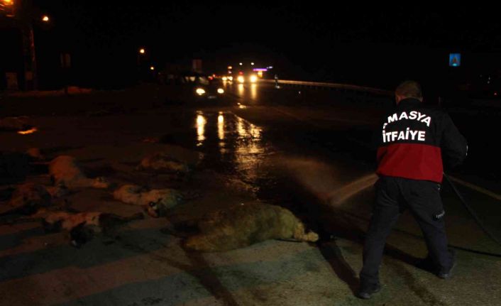 Amasya’da otomobillerin çarptığı sürüdeki 25 koyun telef oldu