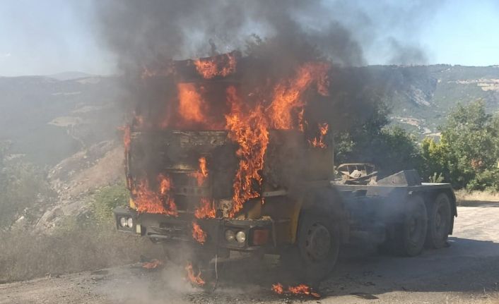 Amasya’da akşam saatlerinde bir tır, Yağcıabdal köyüne giderken henüz bilinmeyen bir nedenle yanmaya başladı. Yangının büyümesi ile tır kısa süre içerisinde alev topuna döndü. Yangını gören çevredeki vatandaşlar ve sürücü durumu itfaiyeye bildirdi. Olay yerine gelen Amasya Belediyesi itfaiye ekiplerinin müdahalesi ile söndürülen yangında tır kullanılamaz hale geldi. Dorseden kurtarılan çekicinin yandığı anlar ise cep telefonu kamerasına yansıdı.