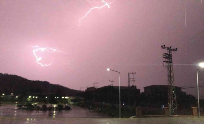 Akşam saatlerinde başlayan yağmurla birlikte çakan şimşekler, gökyüzünü aydınlatırken görsel şölen oluşturdu.