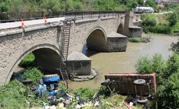 Amasya’da römorkunda sebze yüklü traktör köprüden Yeşilırmak Nehri’ne uçtu. Kazada yaralanan sürücü hastaneye kaldırıldı.