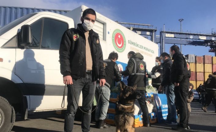 Ambarlı Limanı’na Güney Amerika’dan gelen muz konteynerlerinde arama yapan Gümrük Muhafaza ekipleri, muzların arkasına gizlenmiş bölmede piyasa değeri yaklaşık 65 milyon lira olan 88 kilogram kokain ele geçirdi. Maddelerin tespitinde hassas burunlu Hugo ve Breki’nin yanı sıra X-ray cihazı da kullanıldı.