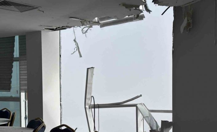 Ambulans helikopterin hastanenin dördüncü katındaki yemekhane bölümüne çarptığı yer hastane içerisinden görüntülendi. Görüntülerde hastane içindeki, duvar ve pencerelerdeki tahribat yer alıyor.
