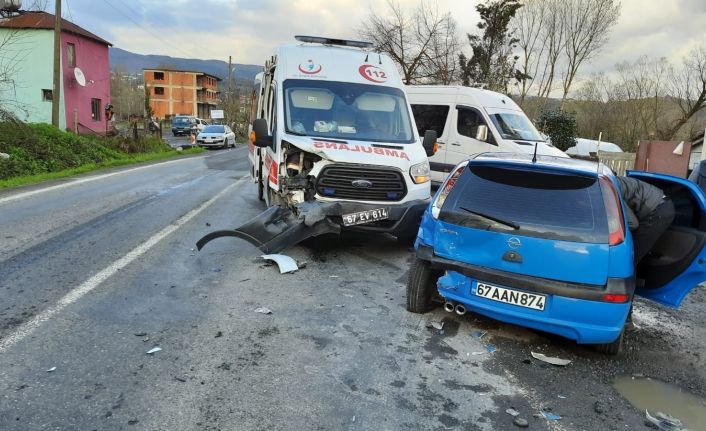 Zonguldak’ın Ereğli ilçesinde hasta taşıyan ambulansı ile otomobil kafa kafaya çarpıştı. Kazada 4 kişi yaralandı.