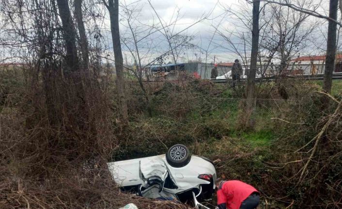 Anadolu Otoyolu Sakarya geçişinde sürücüsünün kontrolünden çıkan otomobil şarampole yuvarlandı. Araç içerisinde bulunan 5 kişilik aile ise ölümden döndü.
