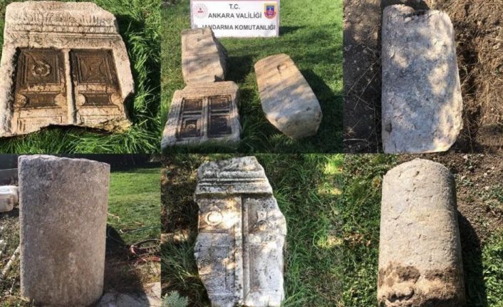 Haymana Cumhuriyet Başsavcılığı koordinesinde şahsın evinin bahçesinde gerçekleştirilen arama sonucunda 5. ve 6. yüzyıl Roma ve Bizans dönemine ait olduğu değerlendirilen 5 adet üzerinde yazı, figür ve semboller olan lahit mezar taşı ve 3 adet sütun ele geçirildi.