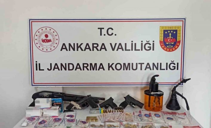 Ankara İl Jandarma Komutanlığı Kaçakçılık ve Organize Şube Müdürlüğü ekipleri, Altındağ, Etimesgut, Keçiören, Mamak, Pursaklar, Sincan ve Yenimahalle ilçelerinde belirledikleri 17 şüpheliye yönelik 14 adrese eş zamanlı operasyon düzenledi. Operasyonda 12 şüpheli gözaltına alınırken, adreslerde yapılan aramalarda 61 gram metamfetamin, 10 gram eroin, 186 adet sentetik ecza hap, 1 gram esrar, 1 gram kenevir, 11 adet uyuşturucu kullanma aparatı, 1 adet hassas terazi, 17 adet cep telefonu, 17 adet sim kart, 1 adet hafıza kartı, 1 adet av tüfeği, 15 adet av tüfeği fişeği, 1 adet kurusıkı tabanca, 41 adet kurusıkı tabanca fişeği, 2 adet 9 mm çapında tabanca, 1 adet 7.65 mm çapında tabanca, 138 bin TL, 300 ABD doları, 1 adet şarjör ve 58 adet 9 mm çapında tabanca fişeği ele geçirildi. Firari şahısların yakalanmasına yönelik çalışmaların devam ettiği aktarıldı.