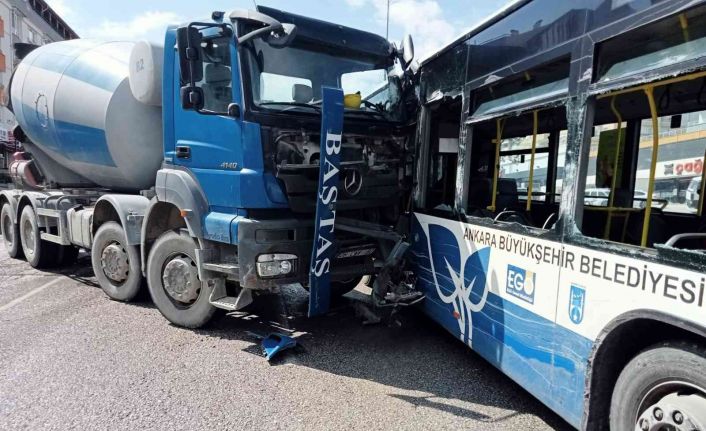 Ankara’da belediye otobüsü ile beton mikserinin çarpışma anı kamerada