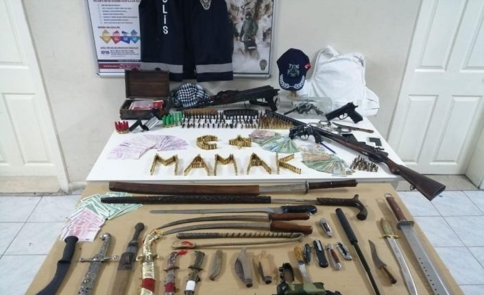 Mamak İlçe Emniyet Müdürlüğüne bağlı Devriye Ekipler Amirliği ekipleri, korona virüs tedbirleri çerçevesinde Doğukent Caddesi üzerinde devriye attıkları sırada 06 B.. 787 plakalı beyaz renkli Renault marka aracı şüphelenerek durdurdu. Devriye ekipleri araç içerisinde çok sayıda kapalı poşet ve kutu olduğunu gördü. Araç aranmak üzere Yavuz Selim Şehit Murat Yatarkalkmaz Polis Merkezi Amirliğine getirildi. Araçta yapılan aramada 1 adet AK-47 Kaleşnikof tüfek ve şarjör içerisinde 26 adet mermisi, 3 adet ruhsatsız tabanca, 1 adet tarihi nitelikli av tüfeği, çeşitli kılıç ve kasaturalar, 2 adet özel yapım bıçaklı baston, çeşitli çap ve markalarda 400 adet mermi, 1 adet balistik yelek, 1 adet polis yeleği, 2 adet kelepçe, 1 adet çelik cop, 20 bin TL para ve diğer muhtelif evraklar ele geçirildi. Yakalanan zanlı Ankara Organize Suçlarla Mücadele Şube Müdürlüğü ekiplerine teslim edildi. Şüpheli, buradaki sorgusunun ardından sevk edildiği adli makamlarca tutuklandı.