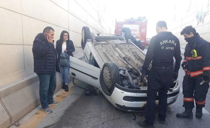 Ankara’nın Sincan ilçesinde alt geçitte kontrolden çıkan araç, bariyerlere çarparak takla attı. Kazada 1 kişi yaralandı.