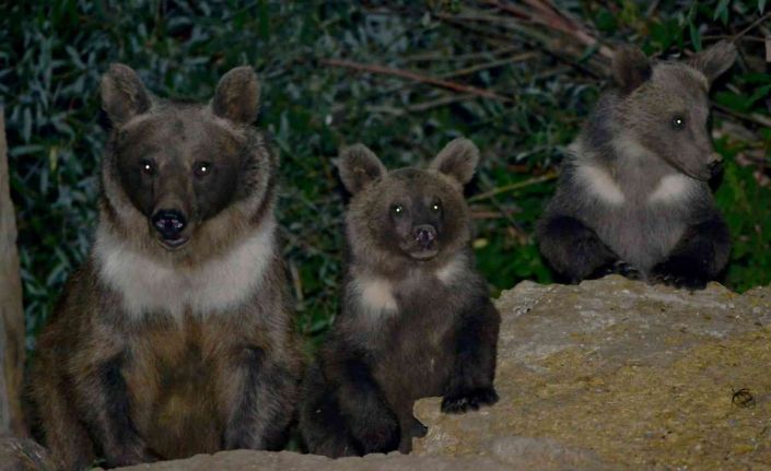 Tunceli’nin Pülümür ilçesinde anne ayı ve 3 yavrusu, açlıklarını gidermek için gece geç saatlerde ilçe merkezinde bulunan mezbahaneye kadar indi. Doğa Fotoğrafçısı Ayhan Özdemir ise orada ayıları bekledi. Mezbahanenin konteynerinden hayvan sakatatları ile iç organlarını çıkarak ayılar, Özdemir’in çekimlerine aldırış etmeden karnını doyurdu. Uzun süre karınlarını doyurmakla uğraşan ayılar, daha sonra ilçe merkezinden ormanlık alana giderek gözden kayboldu.