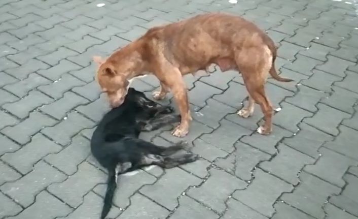 Kocaeli’nin Kartepe ilçesinde bir otomobilin çarpması sonucu yavrusu ölen köpeğin, yavrusunun başında dakikalarca beklemesi görenleri duygulandırdı.