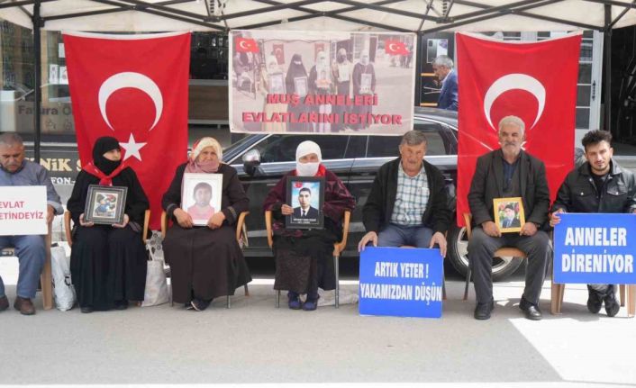 Muş’ta çocukları terör örgütü PKK tarafından kaçırılan aileler, DEM Parti il binası önündeki eylemlerini sürdürüyor.