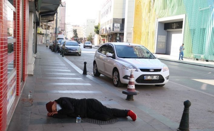 Korona virüs tedbirleri kapsamında uygulanan sokağa çıkma kısıtlamasına rağmen alkol alıp kaldırıma sızan kişi, sağlık ekiplerine zor anlar yaşattı.