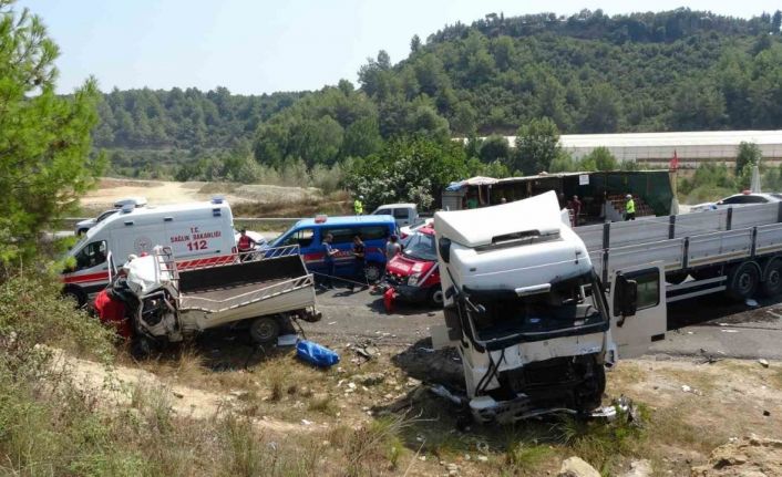 Feci kazanın ardından Akseki Manavgat yolunda trafik akışı tek şeritten kontrollü bir şekilde verilirken uzun araç kuyruğu oluştu.