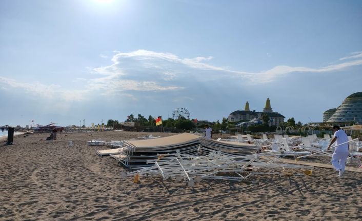 Kısa süren ancak etkili olan hortumun ardından sahilde savrulan gölgelik ve şezlonglar otel görevlileri tarafından toplanarak yeniden düzenleme yapıldı.