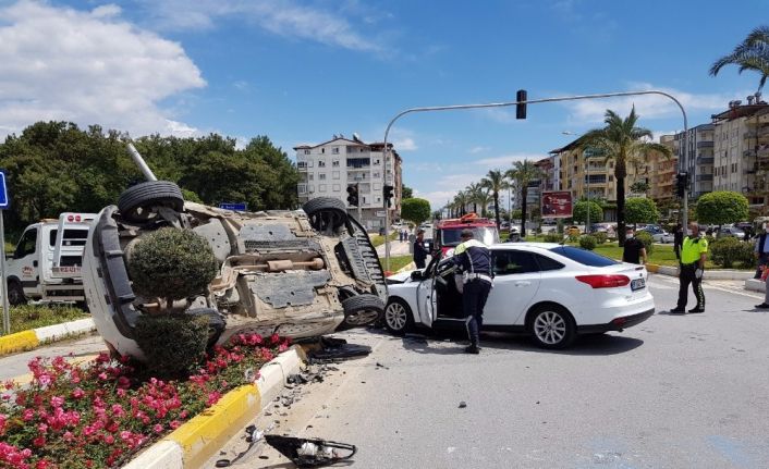 Antalya’da iki otomobilin çarpıştığı trafik kazasında 3 kişi yaralandı. Kavşakta meydana gelen kazada otomobillerden biri havalanarak refüjde ters döndü.