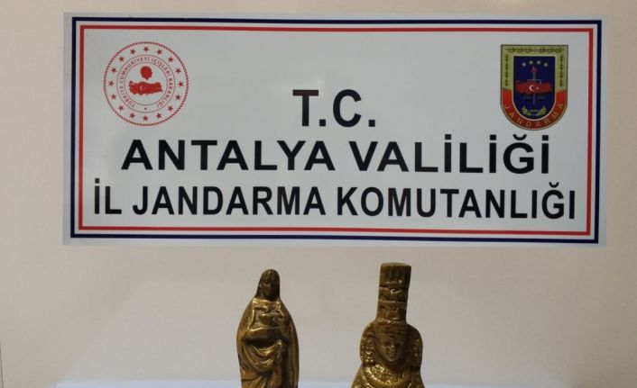 Antalya Cumhuriyet Başsavcılığı koordinesinde, Antalya İl Jandarma Komutanlığı KOM Şube Müdürlüğü ekipleri, şehit merkezinde ikamet eden bir şahsın elinde tarihi eserler olduğu ve satmak için Konyaaltı İlçesi Çakırlar Mahallesine geleceği bilgisini aldı. Dün akşam 22.30 sıralarında şüpheli şahsın kullandığı aracı takibe alan ekipler, Bahtılı Mahallesine gelindiğinde aracı durdurdu. Araçta yapılan aramada Roma dönemine ait olduğu değerlendirilen Meryem Ana ve Tanrıça Artemis’in altın heykeli bulundu. Heykeller incelenmek üzere Antalya Müze Müdürlüğüne teslim edileceği öğrenilirken, şüpheli araç sürücüsü A. G., gözaltına alındı.