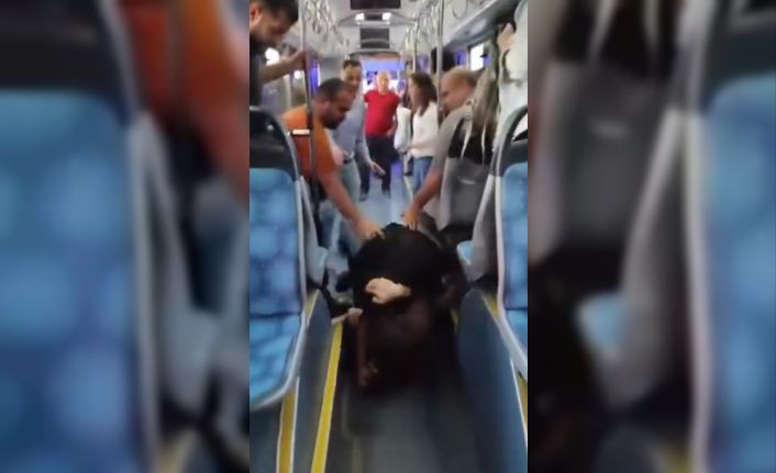 Diğer yolcuların ise izlemekle yetindiği kavgada bir yolcu, "Biriniz yardım etsenize, erkek olacaksınız bir de" şeklinde tepki gösterdi.