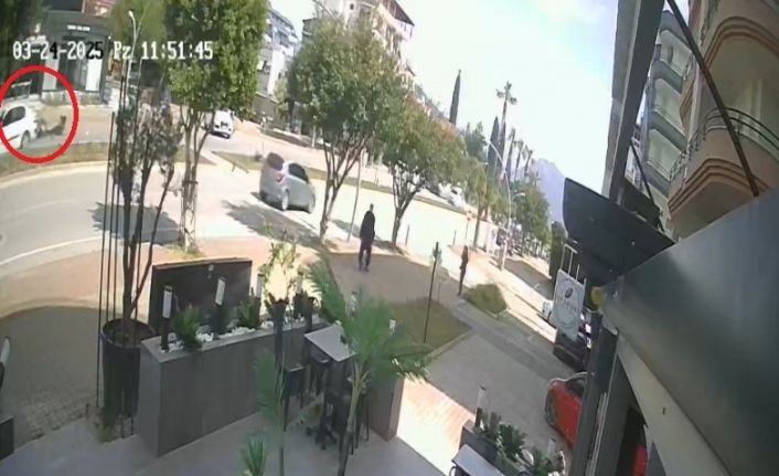 Öte yandan, meydana gelen kaza, çevrede bulunan iş yerlerinin güvenlik kameraları tarafından saniye saniye kaydedildi. Motosikletin Ilıca Caddesi’nden Uğur Mumcu Caddesi’ne çıkıp otomobille çarpıştığı ve motosiklettekilerin yola savrulduğu anlar görüntülere yansıdı.