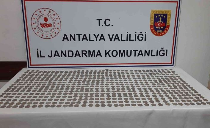 Antalya’nın Kepez ilçesinde 2 şahsın piyasaya sürmeye çalıştığı tespit edilen ve Roma dönemine ait olduğu değerlendirilen 613 adet sikke ele geçirildi.