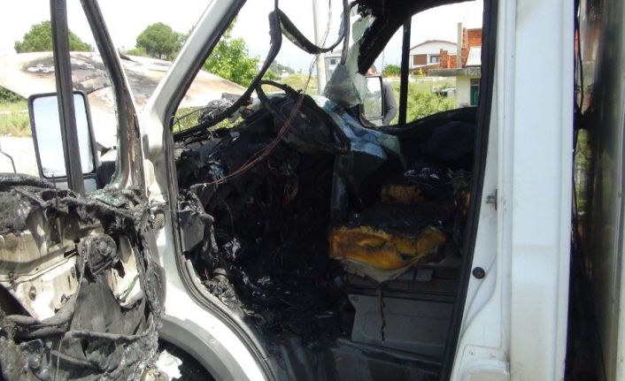 Antalya’da seyir halindeyken alev alan kamyonet yandı