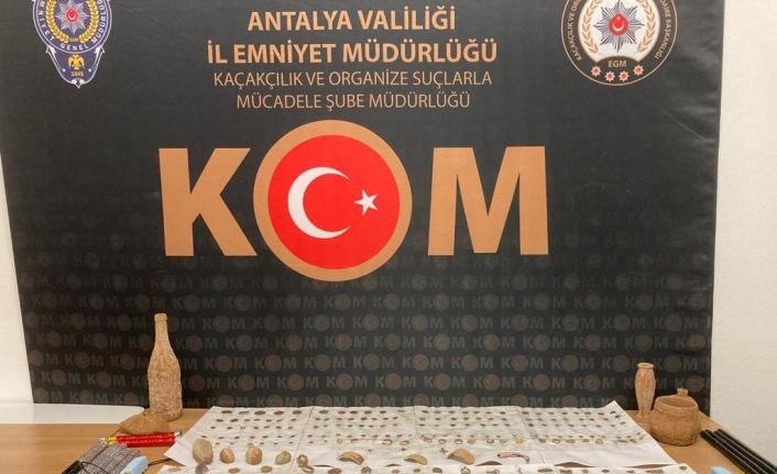 Antalya Cumhuriyet Başsavcılığı Koordinesinde Kaçakçılık ve Organize Suçlarla Şube Müdürlüğü Kaçakçılık Büro Amirliği ekipleri, K.U. isimli şahsın elindeki tarihi eserleri satmaya çalıştığı yönünde bilgi aldı. Harekete geçen ekipler, 8 Nisan Perşembe günü iki adrese operasyon düzenledi. Evde ve şüpheli K.U.’nun üzerinde yapılan aramada 232 adet İslami, Roma, Helenistik, Avrupa Orta Çağ ve Bizans dönemlerine ait olduğu değerlendirilen tarihi sikke ve yüzük, çeşitli obje, anfora şişe ele geçirildi. Aramalarda ayrıca 5 adet alan tarama çubuğuna da el konuldu. Ele geçirilen tarihi eserler Antalya Müze Müdürlüğüne teslim edildi. Tarihi eserlerin yurt dışına çıkarılması yasak eserler olduğu bildirildi.